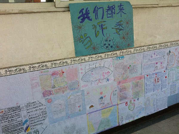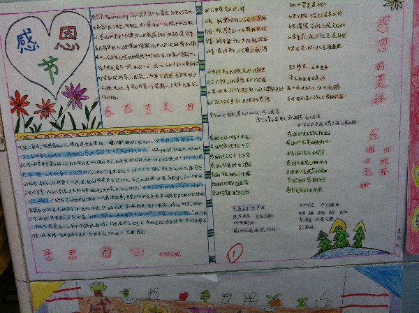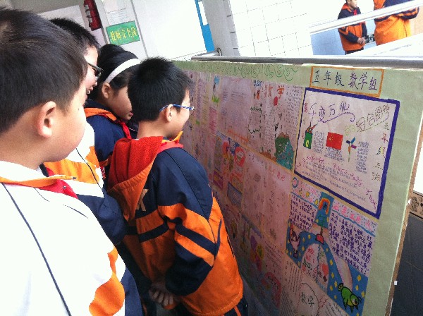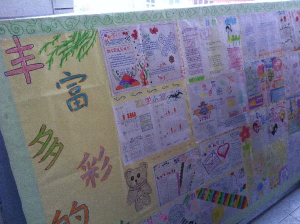 以往空空的走廊,一夜之间,焕然一新,充满浓浓的文化氛围,这是五年级组的手抄报展评活动开始了。本次活动,数学组、英语组都制作了精美的展板,各班主任也组织学生以《感恩》为主题制作了手抄报。你看,每个班的教室外墙,贴满了手抄报,设计合理,色彩明艳,内容丰富,吸引着孩子们、家长们驻足欣赏,每个孩子都是评委,还邀请了家长参与评比。