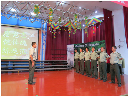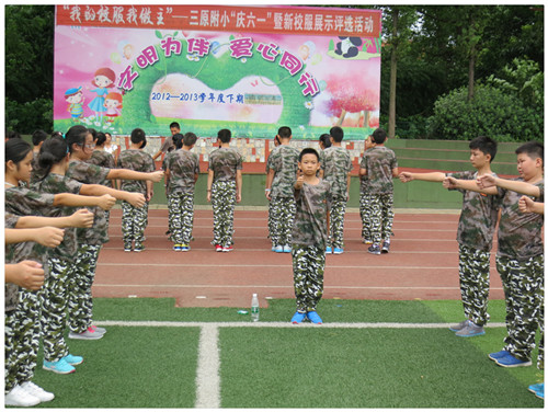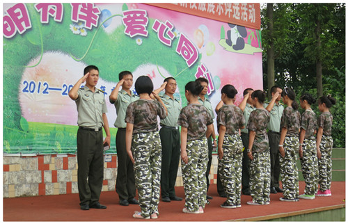 2013年8月30日下午16:00,2014级六年级240多名学生结束了开学的第一课——励志训练营。我年级学生在学校领导、班级老师及教官的指导下为励志训练营画上一个圆满的句号。