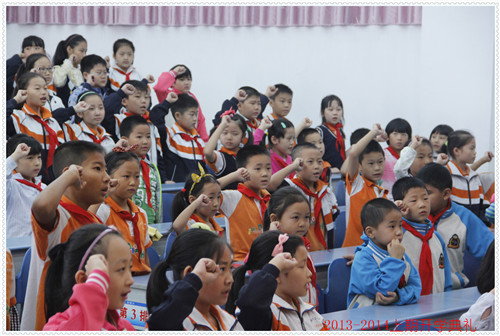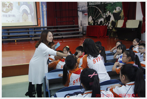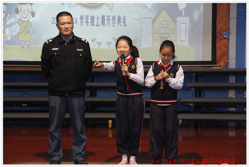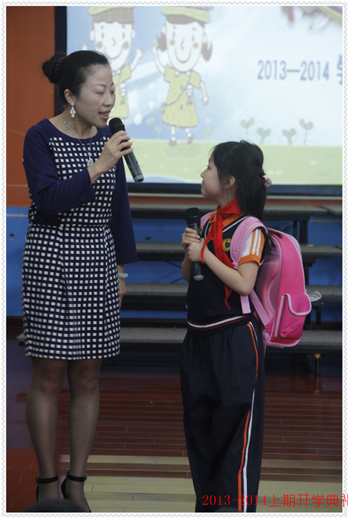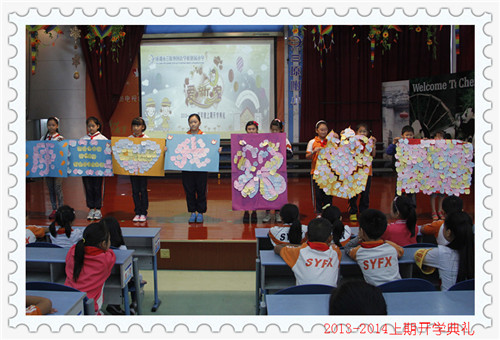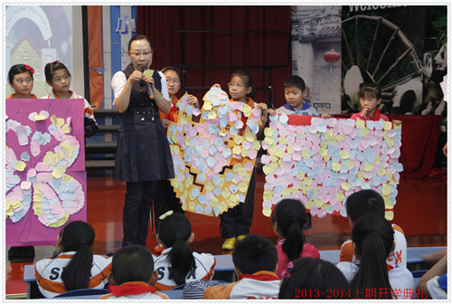 (成都市三原附小德育室 9月5日报道)美丽新校园,美丽新学期—我校2013——2014学年度上期开学典礼在天真可爱的短剧中拉开帷幕,魏校长做了开学典礼致辞。致辞中,魏妈妈代表学校领导对新加入我校的一年级同学和新老师们表示热烈的欢迎。同时,勉励全校同学:践行校园小主人责任,爱护新校园。来自我校电视台的小记者分别现场采访了我校后勤叔叔和同学代表的暑假生活,强烈的对比中让同学们深切地感受到了后勤叔叔的辛劳。各年级同学们还准备了年级组爱校“幸福贴”——写满祝福的卡片,表达了同学们对新校园的喜爱。最后,在德育室陈主任的带领下,全校同学们一起宣誓——爱护新校园,尊重同学,争做文明小学生。