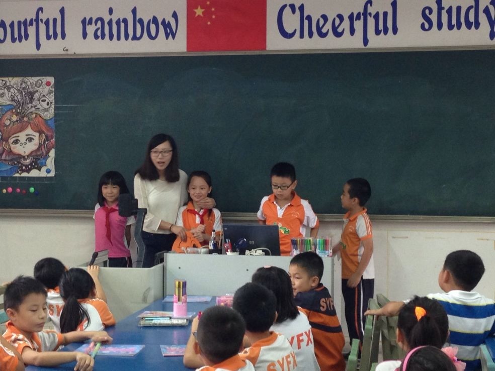 2013年9月18日,上午第二节课美术组的老师们开始了本期组内的第一节教研课,深受学生欢迎的包亚妮老师带着三四班的学生学习了《画人像》一课,课上包老师通过神秘的引入,很快让学生进入了这堂课,包老师带着孩子们分析人物的五官特征,再通过有趣的游戏方式,使孩子们很快抓住自己同学的面部特征。最后孩子们描绘出了美丽的作品!
