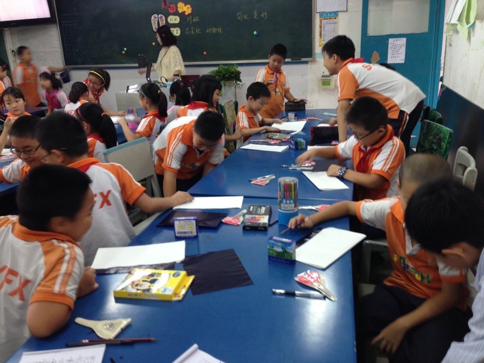 2013年9月23日,美术组两名新老师进行了亮相课展示。第一节课由教学经验丰富的陈慧敏老师执教了《羌族鞋垫》一课,本课以羌族文化为背景用鞋垫的方式表现了羌族热情似火的文化底蕴。