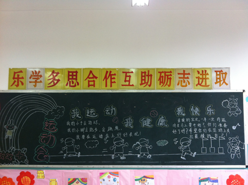 通过各班的黑板报,让孩子们更加明白了生命在于运动,天天锻炼身体棒!