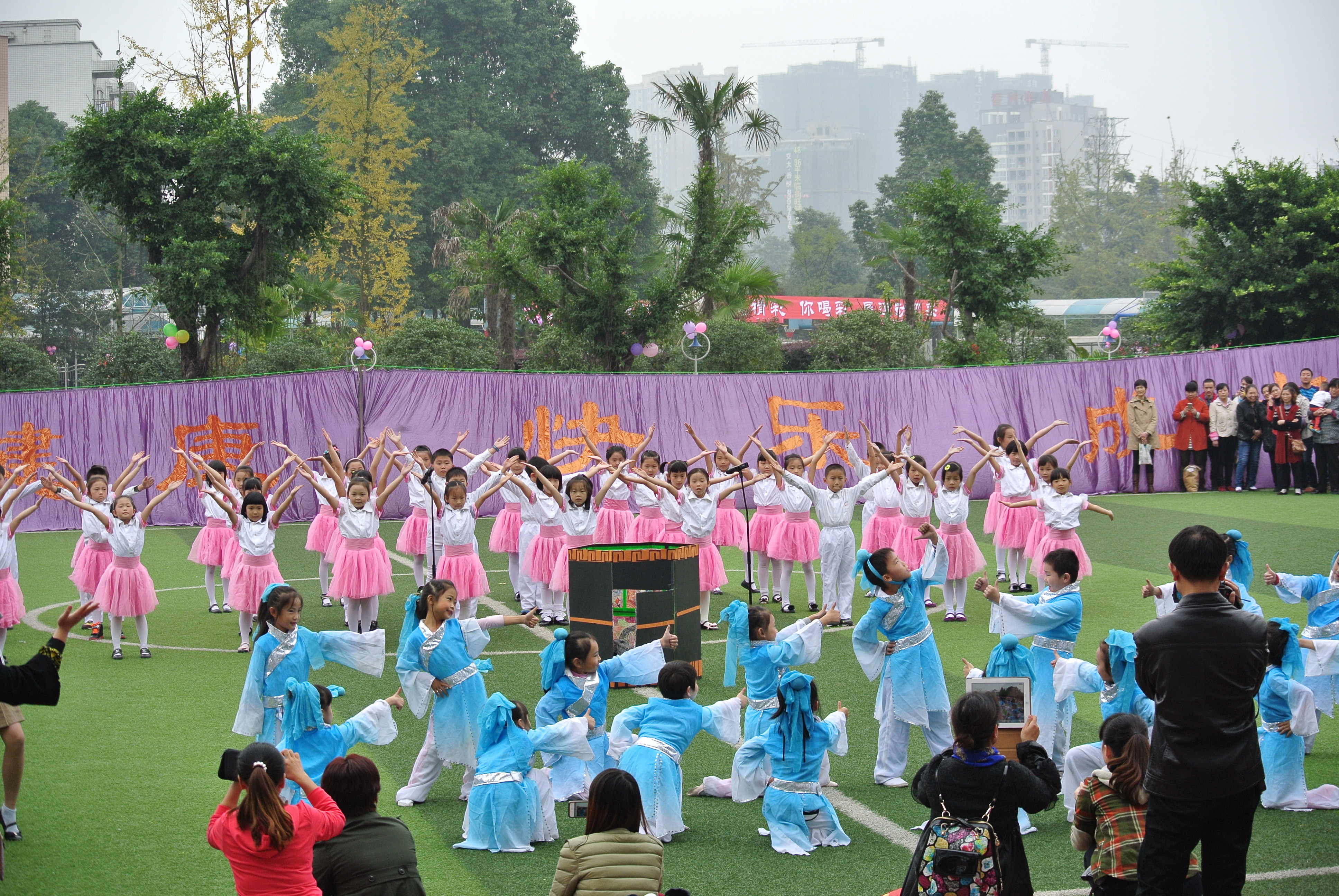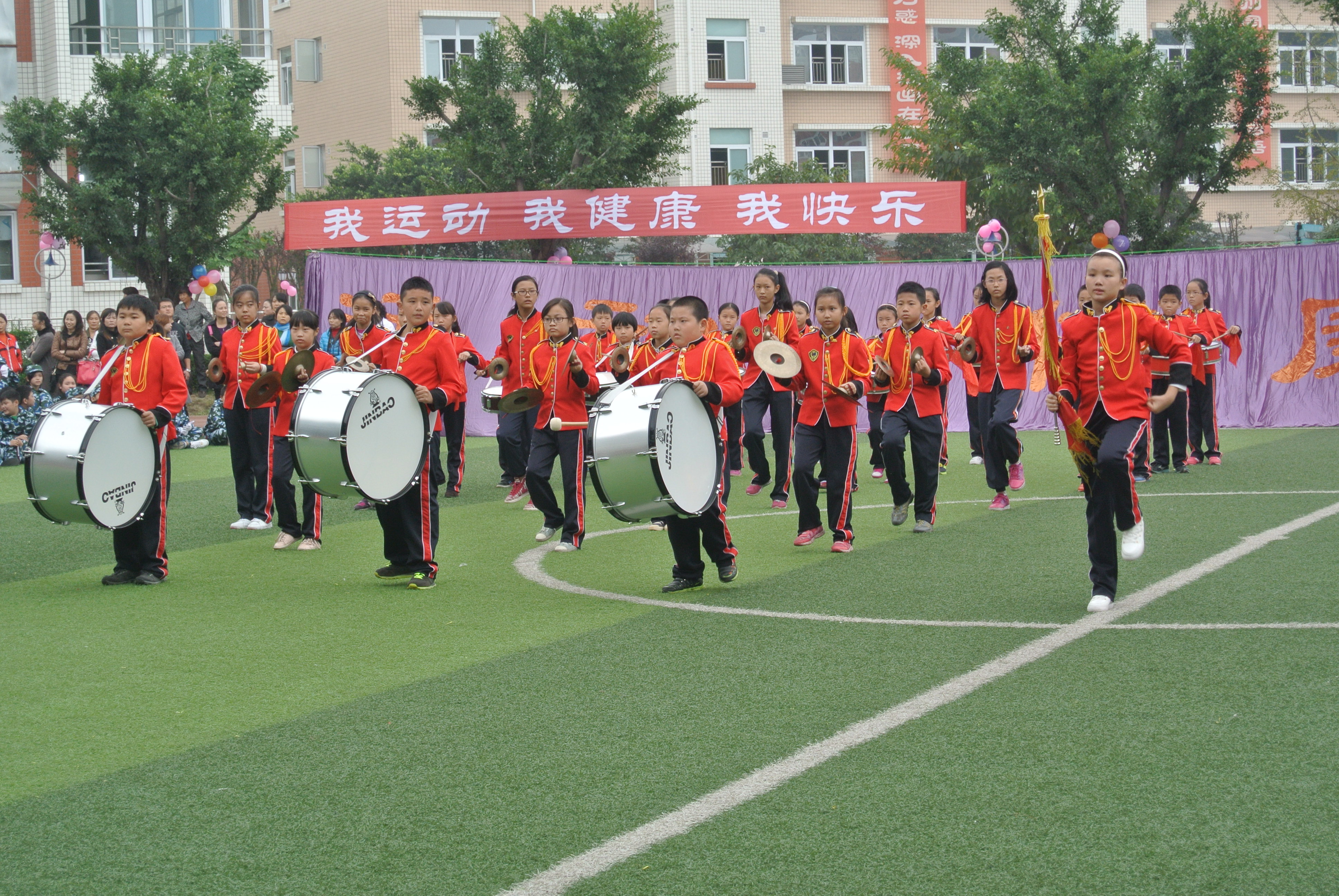 音乐教研组编排的校级艺术特长队节目在我校第十二届综合运动会开幕式上的的精彩展示。