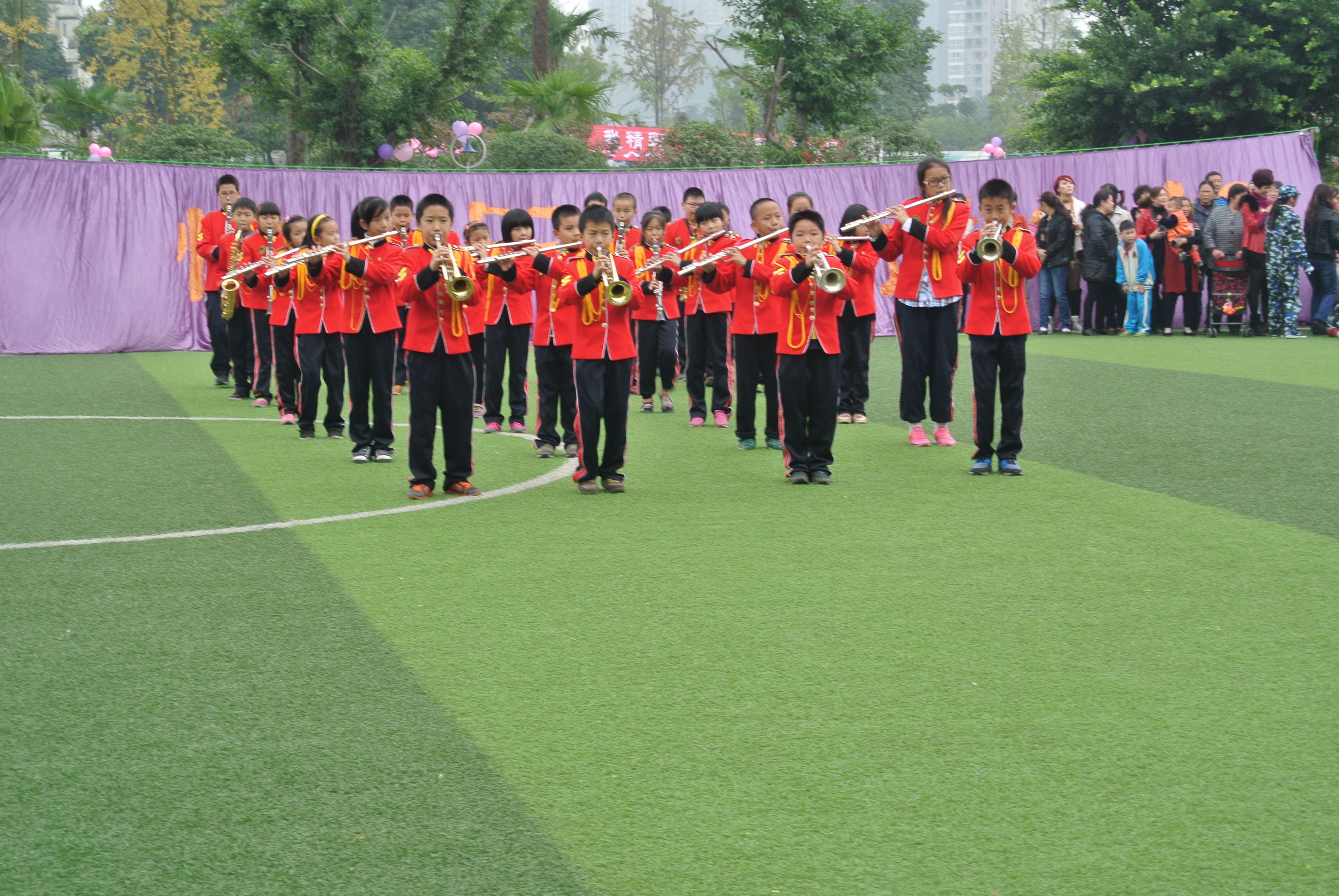 管乐队、鼓号队合奏气势磅礴的《出旗曲》、《检阅曲》;