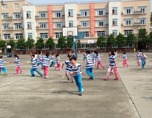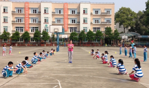 ,王明桂老师在校级赛课中带给孩子们一堂课题为《快乐跳绳》的体育课,整堂课孩子们在玩中学,玩中练,欢快的笑声感染了我们在场的每一位老师!