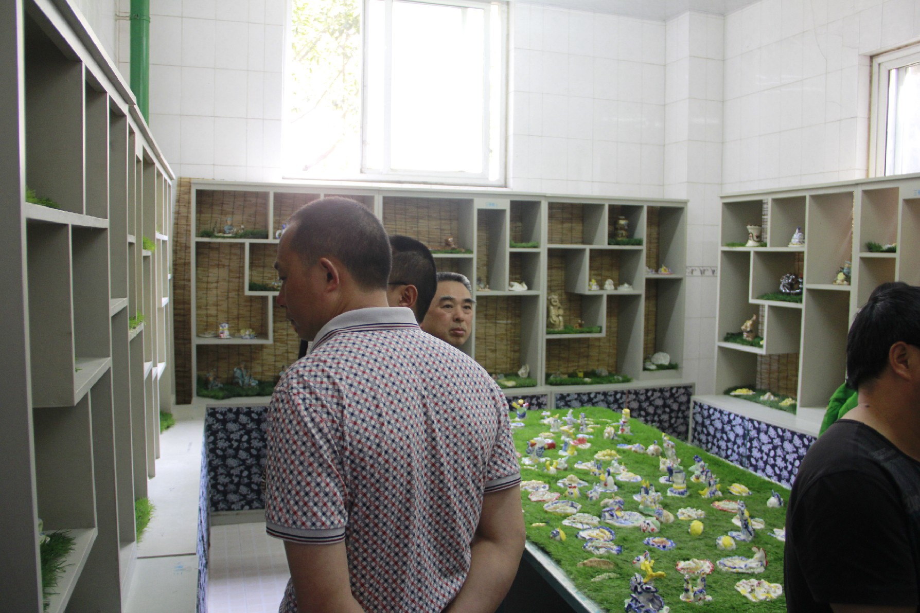 区教育局教育科领导首先讲了本次活动的意义,我校张艳助理也就我校的艺术教育情况进行了现场汇报交流。随后,与会领导和老师分为四组,在我校教培室工作人员的指引下深入校园,参观了各具特色的美术专用教室,墨香飘逸的国画走廊,别具一格的陶艺教室与烧制间,挂满创意的艺术长廊,色彩艳丽的粘土画展,溢满童真意趣的百米长卷······