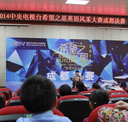 2014年5月4日,我校学生前往成都参加了CCTV英语之星风采大赛成都赛区决赛。比赛分为小低,小高两组。小低组的孩子们最小的只有8岁,经过前期的准备 ,他们自信满满,英语语音标准。这给在场的家长和评委老师留下了深刻的印象。小高组的孩子们经过几年英语学习的积累,舞台表现力更是出色!本次比赛,我校总共有8名学生进入四川省决赛,期待这8名孩子能代表我校赛出他们的风格,赛出他们的水平!