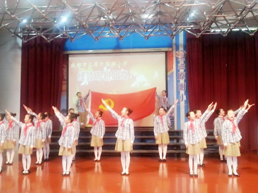 新都区组织的”红领巾心向党”表演唱活动在我校积极开展,音乐老师与孩子们利用课余时间积极排练着,节目于5月14日圆满完成录制,美丽的笑容、优美的动作、嘹亮的歌声足以感动现场的每一位观众。让我们共同进步,为孩子的未来争创美好的明天。