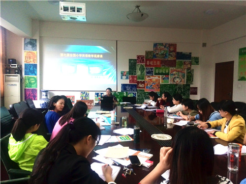 9月27日上午9时,英语高段组全体老师在我校二楼小会议室召开了英语教研会。陈虹来主任组织大家观摩学习了第七届小学英语研讨活动中的两节优质课。一节是来自北京的王红老师带来的高段阅读课《Life in the year 2050》,另一节是北京的郭玉峰老师带来的低段绘本故事课《Cats and Dogs》。两节课各有千秋,两位老师以个人独特的风格展示了高段阅读课和低段绘本故事课的教学方法。观课后,大家纷纷发言评课,并对高低段不同的英语教学方法进行了激烈地探讨。