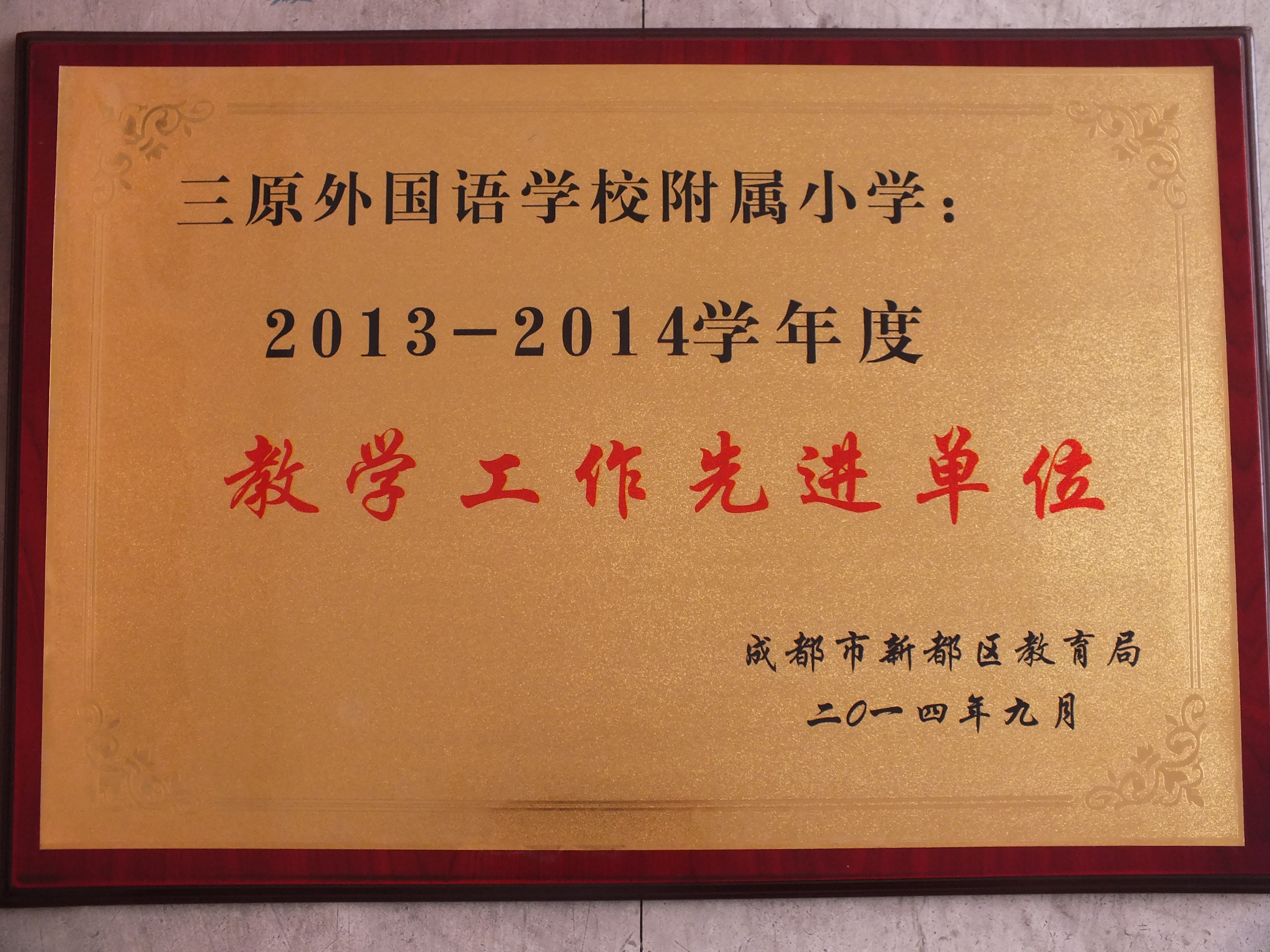 热烈祝贺我校被评为2013—2014学年度“成都市新都区教育质量先进学校”