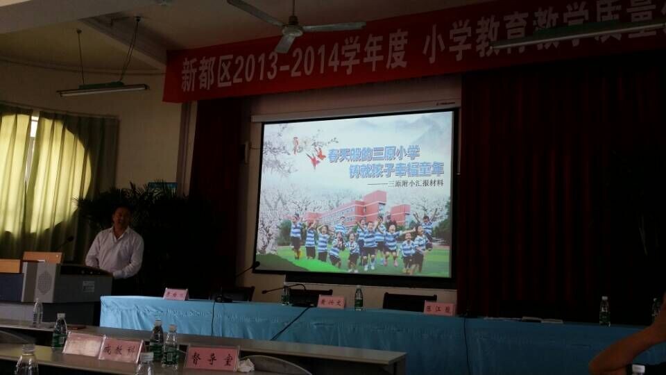 三原小学全面贯彻国家教育方针、法规,全面实施素质教育,勇于开展教育创新,为提高新都区教育教学质量作出了巨大贡献。9月,三原小学被新都区教育局表彰为2013—2014学年度“成都市新都区教育质量先进学校”。在表彰大会上,罗建伟校长代表15所获奖小学做了《春天般的三原小学,留给孩子最快乐的童年》的工作报告。在报告中,罗校长就学校教育思想、办学愿景、独特的校本课程、活力课堂五环导学模式的实践与研究以及学校教育教学取得的成果做了深入交流,获得参会领导和校长的热烈掌声。