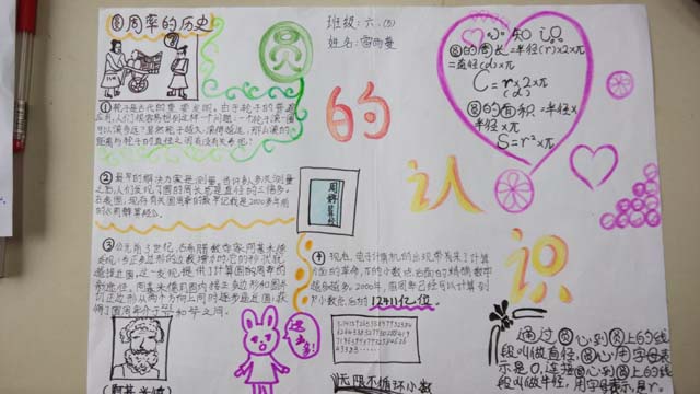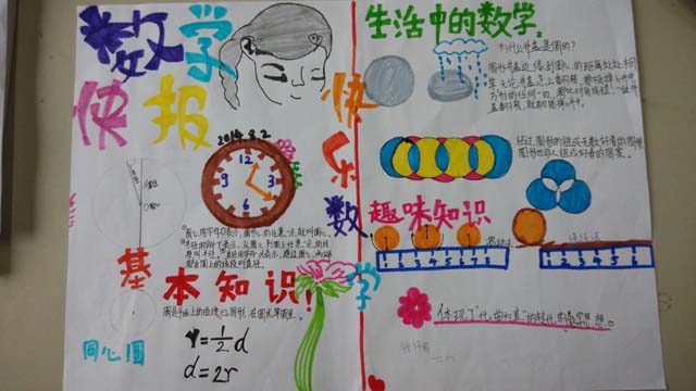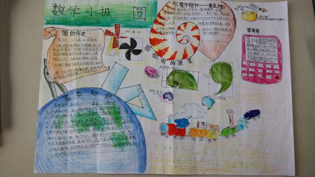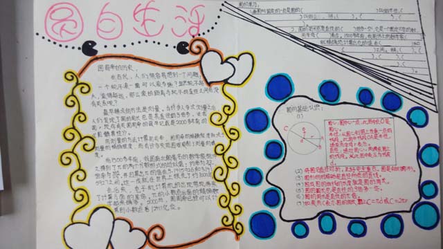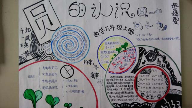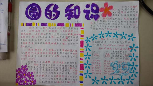 学习了《圆》以后,六年级的同学们利用国庆大假,制作了一张张精美的数学小报,加深了对“圆”的知识的认识和理解。