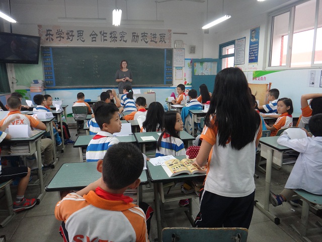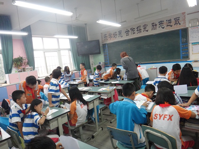 10月20日,五年级的外教课以孩子们特别感兴趣的食物话题为本周拉开了序幕!外教老师Josie给孩子们本周的口语训练主题是:小组讨论你知道的以某一字母开头的食物、饮料、点心或者零食等。该课题以头脑风暴的形式充分调动了孩子们的学习积极性,给孩子们无限的空间自由联想和讨论。这节课不仅提高了孩子们的英语口语能力,更加扩大了孩子们英语学习的词汇量,深受孩子们的喜爱!Josie首先给出的字母是c,孩子们一下子头脑风暴般地联想到了美味的蛋糕cake,chicken,coffee,cola等等,有些单词孩子们会说但不会写,怎么办呢?瞧,聪明的孩子们会从我们的学习工具:英语词典中获取帮助,这节外教课真是既动手动脑又动口啊!