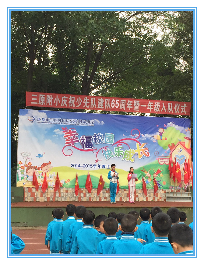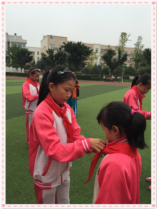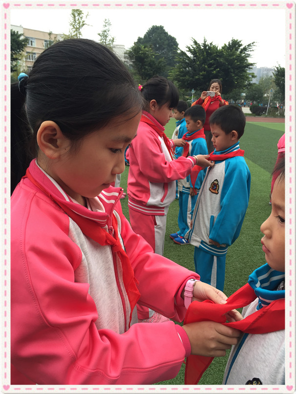 10月14日下午,我校在第65个建队日来临之际举办了一年级小朋友的入队仪式。我们四年级的学生很荣幸地参与到为一年级的弟弟妹妹系红领巾的活动中。