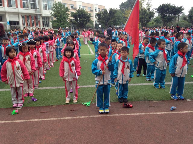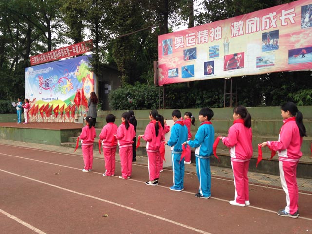 在中国少先队成立65周年之际,我校于10月14日(周二)下午开展“弘扬和培养社会主义核心价值观”主题队日活动暨一年级新生入队仪式。现场398名小学一年级同学,光荣地加入了少先队。我校四、五年级少先队员为一年级新队员佩戴红领巾,希望大家把少先队员的风采传承下去。