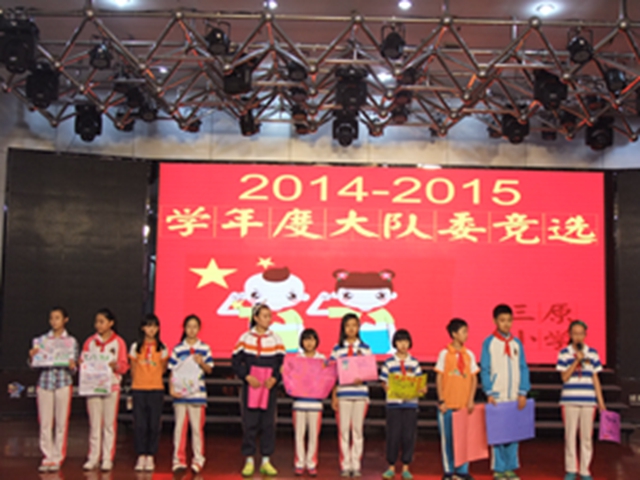 弘扬核心价值观,争做合格接班人——2014年三原附小大队委竞选在庄严活泼的队歌声中拉开了序幕。本次竞选分为:1、候选人自我风采展示、推荐人陈述;2、竞职演讲;3、现场问答(少先队知识、活动策划等),重在考查学生的组织能力、思辨能力等。竞选现场,不仅邀请了各年级学生代表,选手们还为自己请来了大批亲友团,为自己加油鼓劲。活动中,选手们精彩的才艺展示和创新的设想,赢得了与会评委和老师的一致赞赏。