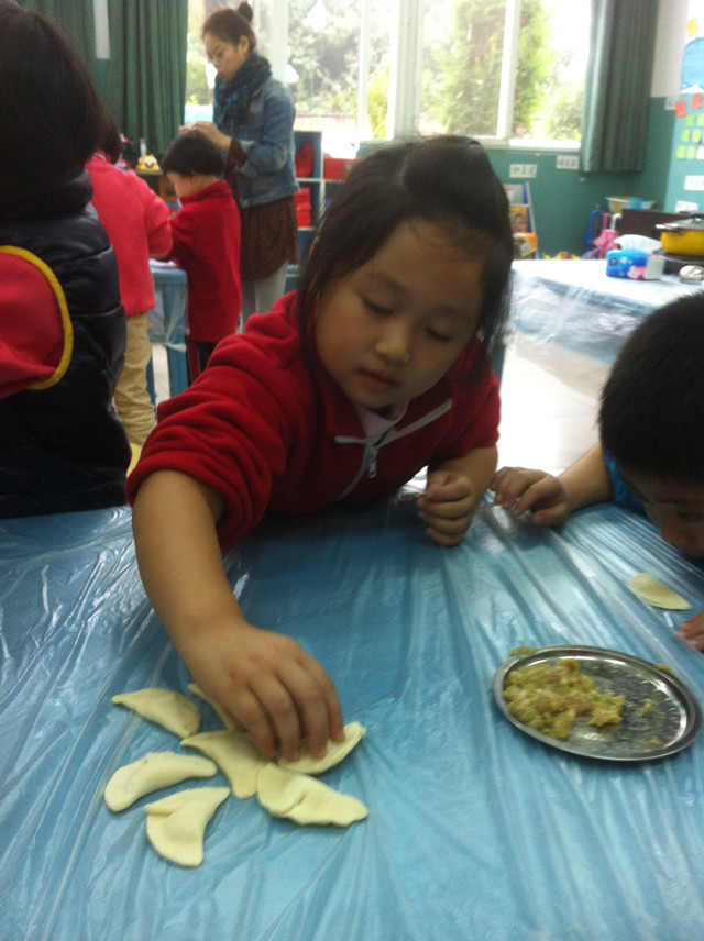 本周四下午,预备二班赵丹赫的妈妈给孩子们带来了一节别开生面的家长课堂!丹丹妈妈向孩子们介绍了今天的课堂学习内容:包饺子。一切准备工作就绪后,阿姨大显身手,擀面皮的速度快得惊人。随后,阿姨示范着饺子的包法,接着孩子们一起体验擀皮、包馅儿。不一会儿,一阵阵饺子香味扑鼻而来,馋得孩子们的口水“飞流直下三千尺”!吃着自己包的饺子,孩子们乐在其中。