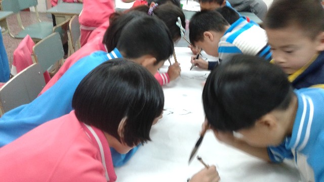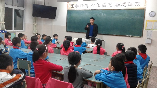 2014年10月16日晚,三年级四班的教室被浓厚的艺术氛围所包围。我班孙仪的爸爸精心准备,让孩子们享受了一场中国画的视觉盛宴。孙仪爸爸用潇洒的字体在黑板上写下了“中国画”三个大字,开始绘声绘色地向大家讲解中国画的知识。孩子们知道了:什么是中国画;中国画的绘画工具有毛笔、墨、国画颜料、宣纸、绢布等;中国画的绘画技法主要可分为工笔和写意两大类等。