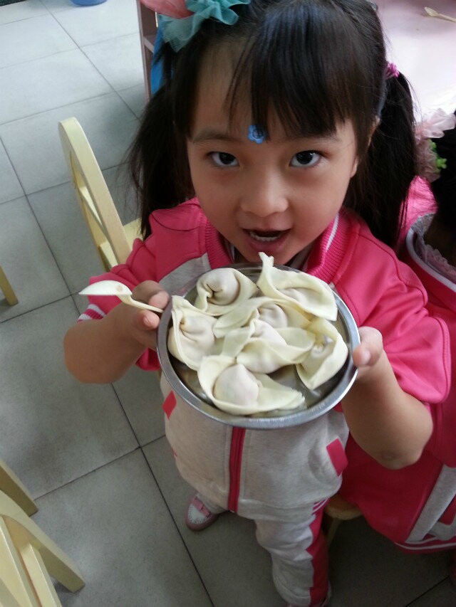 本周,预备三班钟碧熙小朋友的妈妈来教孩子们包抄手啦!阿姨先给孩子们介绍了包抄手的基本常识,在了解了包抄手的简单方法后,孩子们在阿姨和老师的指导下认真地包起了抄手。当一碗碗热腾腾的抄手端上来时,孩子们品尝着自己的劳动成果别提有多高兴了。