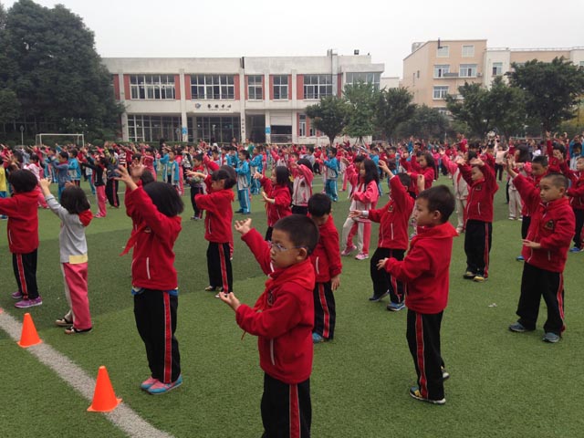 10月22日星期三下午,一年级全体师生在足球场为运动会进行排练。下周孩子们将迎来一年一度的秋季运动会。在老师们的指导示范下,孩子们也都集中精神投入到开幕式排演当中,阵列有序,排演正紧锣密鼓进行中。相信我们付出的汗水与努力,一定会在运动会开幕和比赛上收获丰厚的回报。