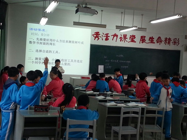 周四,二年级组易堂霞老师参加我校“一级教师赛课”。本次赛课采用了借班赛课的形式,提前一周告知所借班级和课题。看,易老师正在给三年级四班的孩子们上《什么是周长》一课。易老师通过让孩子们动手描一描、摸一摸理解什么是“一周”,再通过讨论、小组合作选用不同的工具对图形的周长进行测量,进一步明确什么是图形的周长!