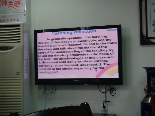 10月27日(第九周),英语高段组继续进行了全英文说课竞赛。本次参与说课的是吴予慧老师。她说课的内容是香港朗文5A Chapter2 PartC,Lesson2.Turning over a new leaf.吴老师以饱满的热情,标准的英语口语,很好地展示了立体说课的特定要素和基本程序。她的课,教学设计异彩纷呈,理论依据恰当合理,最后以5分钟现场教学展示出她整堂课的生机和活力。整个过程充分展示了三原附小英语老师扎实的教学基本功和英语教学的专业素养。