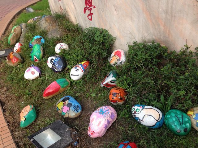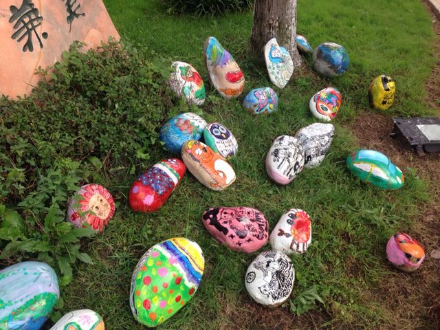 大家还记得中午美术陪练的孩子认真绘制的漂亮石头吗?快来看看他们的成果吧!原本普通的石头在他们的巧手打扮下都纷纷穿上了新装,一起聚会于我们正大门的愿景石处,真是太漂亮了,大家快来围观吧!