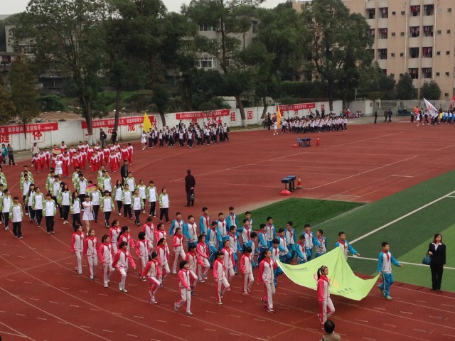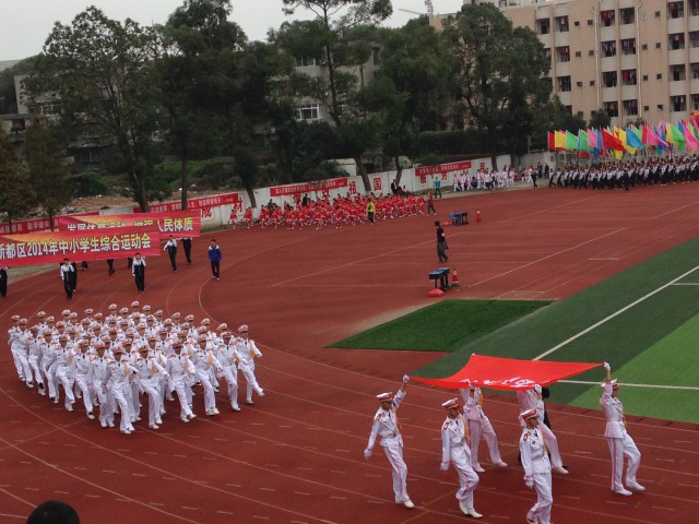10月31日,我校田径代表队参加了新都区举办的2014年中小学生综合运动会。伴随着激昂的音乐,我校运动员们步伐整齐,口号响亮,昂扬的斗志彰显着他们青春的风采。