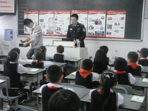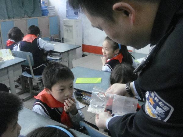 10月20日,三年级一班家长陈靖希爸爸在家长课堂中给三年级的孩子们带来了《坚决不吸第一口》的禁毒知识,孩子们在视频中看到吸毒成瘾的瘾君子给社会和家庭带来的严重危害后,都说:“毒品太可怕了!”后来陈靖希爸爸和他的战友又将带来的毒品和仿真毒品展示给孩子们。