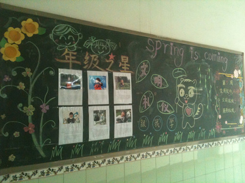 月,一年级组更换了“文明礼仪跟我学”的主题年级板报。