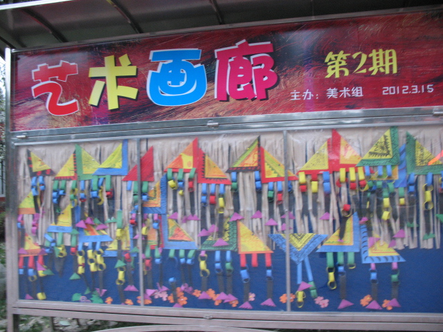 月春天的主题,展示了学生的手工作品——风筝、龙年版画——龙。