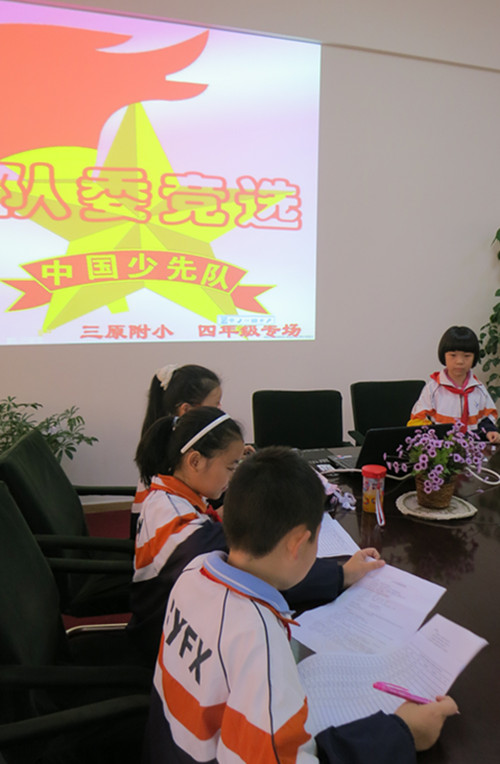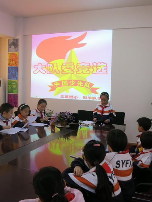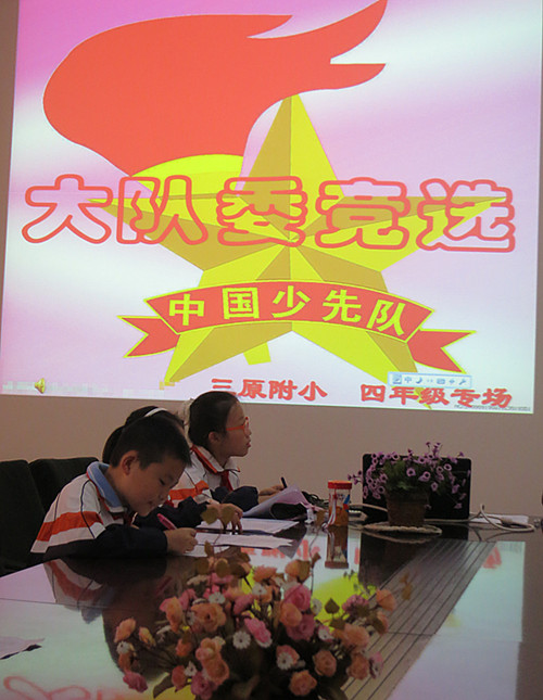 (德育室2012年9月20日报道)开学第三周,新学期大队委竞选如期举行,于9月20日进行了四年级大队委专场选拔。四年级大队委候选人经过少先队理论测试顺利进入今天的面试。面试现场,主考官们“专业”的提问,选手们机智的回答,让现场的气氛高潮不断。下面是现场的精彩瞬间: