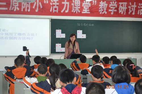 第十二周星期三,数学组进行了活力课堂的校级赛课,谢芳群、郑苹、蒋晓艳等老师分别代表低段、中段、高段参加了这次赛课。谢芳群老师执教《一个星期有几天》,她的课堂寓教于乐,课堂气氛活跃;郑苹老师执教《生活中的负数》,她经过改革,把两节课的内容整合为一节课,课堂容量大;蒋晓艳老师执教《多边形的面积》,课堂上,她充分让学生去探寻多边形面积的不同计算方法,多角度发散学生的思维。三位老师的课各有千秋,得到了各位老师的一致好评。