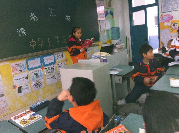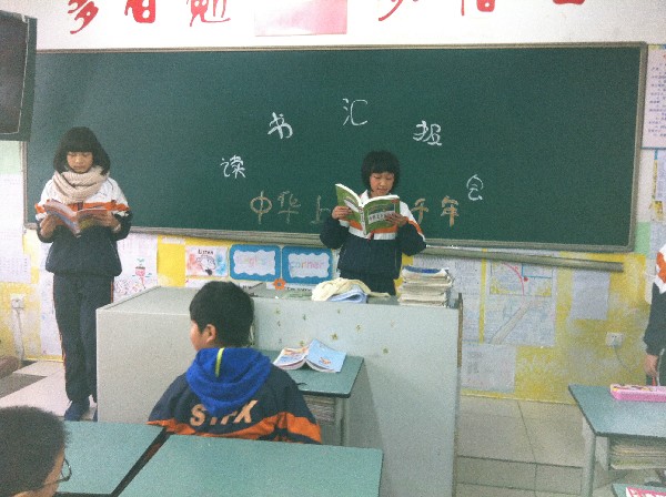 今天上午第一二节课,我们开展了读书汇报会活动。第十周始,我们在老师的带领下,了解中华民族悠久的历史,开始阅读《中国上下五千年》。今天,我们利用语文课,在袁婉茹的主持下,讲述历史故事。同学们都非常积极踊跃,下面的同学也在积极准备, 认真倾听着。