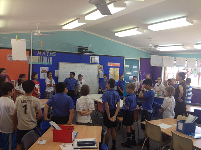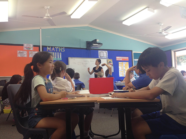 这里的数学课孩子们是一边讨论一边完成作业的,也可以找舒服的地方完成,而且孩子们还要相互出题考倒对方。虽然在坐姿、书本摆放和发言上很随意,但本子上的作业却是干净、整齐、规范的。每页本子只写当天的作业,新的一页从中间对折,左上角写日期,中间写题目。不过最特别的地方是每节课都会有数学小游戏,比如按顺序说出3的倍数,数字接龙(每人可连续说1-3个数字,并接龙,说到21的孩子便被淘汰。)