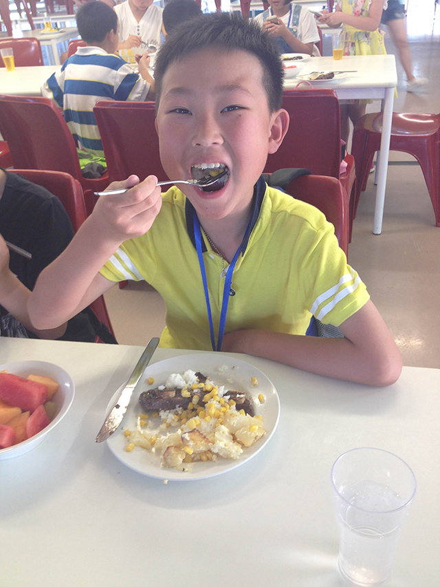 我们的光盘行动也是从第一天就开始了。接过脸上挂满大大微笑的餐厅阿姨们为我们送上的午餐、晚餐,孩子们便开始享受美食了。不仅是牛排、米饭、土豆烧牛肉、薯条等一扫而空,连蔬菜水果们孩子们也不放过。即使挑食的孩子,也慢慢开始有了进步,现在每个孩子都能做到吃光所有盘中的食物。这样,不仅让孩子们膳食平衡,不挑食,也做到了节约粮食,吃多少拿多少。